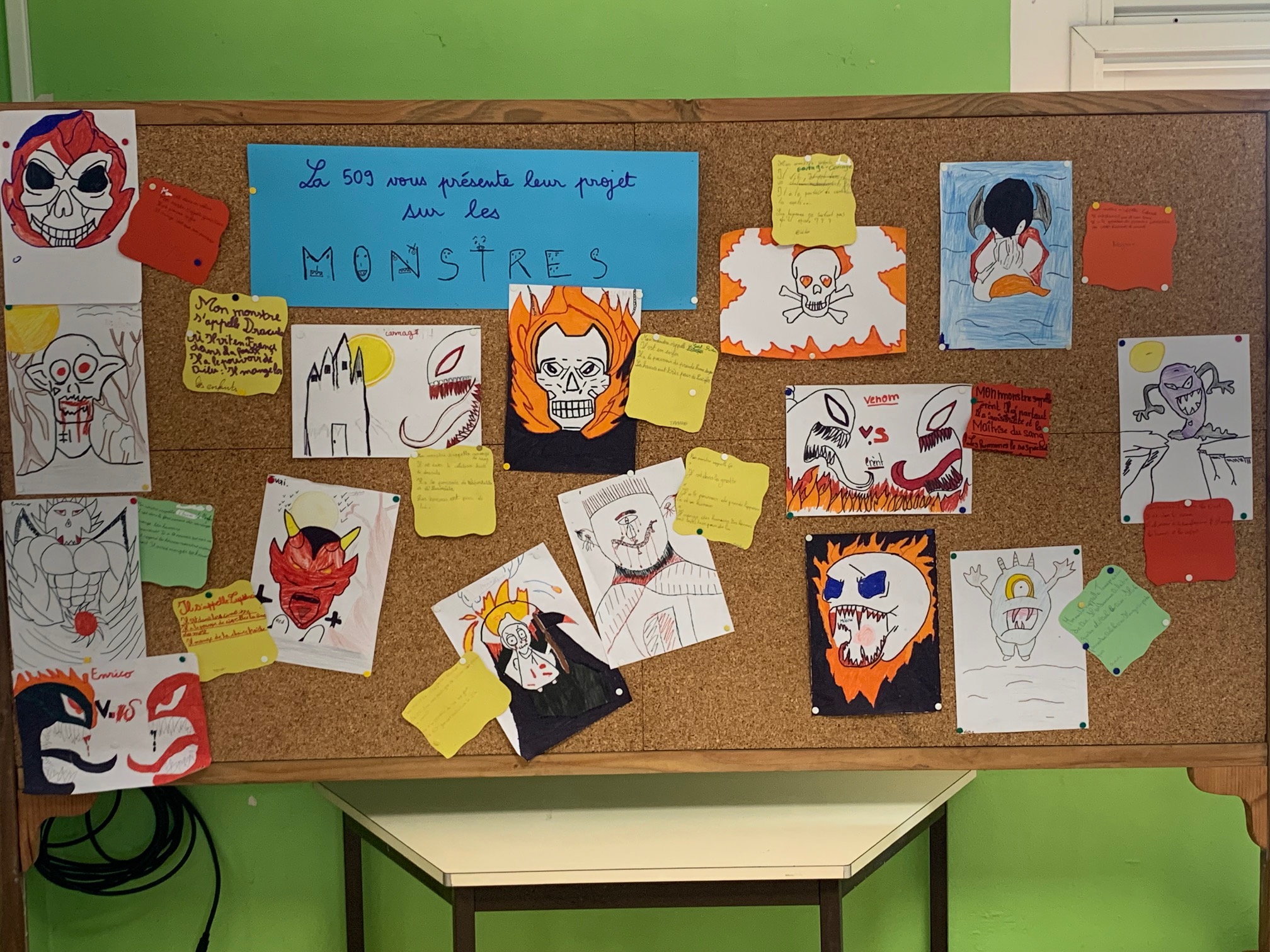 En termes d’apprentissages, ce projet a permis de construire le sens de la notion « monstre », d’accroître l’acculturation par une plus grande fréquence à l’espace dédié à la littérature (CDI), de développer l’imagination et la créativité tout en renforçant des compétences en production d’écrit.