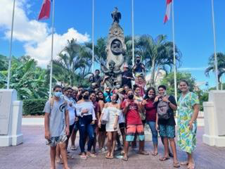 Les élèves de 3PM se sont rendus face au CESC où se trouve différents portraits de poilus tahitiens sur les murs afin de poursuivre leurs recherches dans le cadre de leur EPI