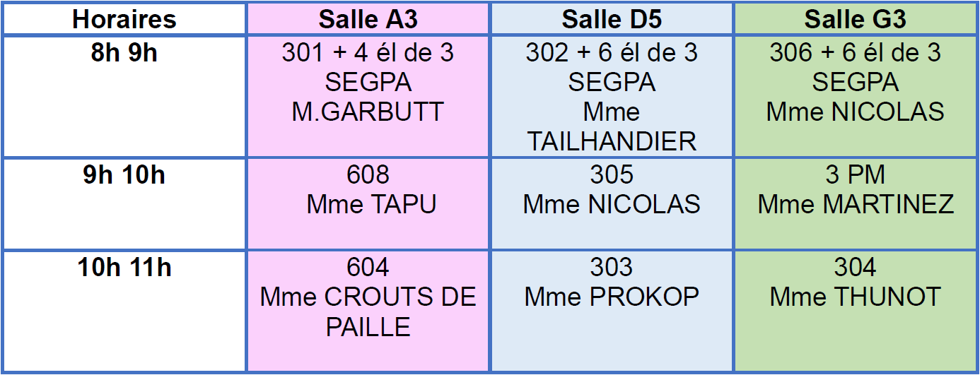 Public concerné : 2 classes de 6° et les classes de 3°