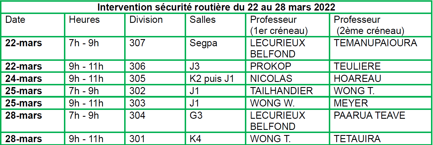 22-28/03/2022 Sécurité Routière / Niveau 3ème