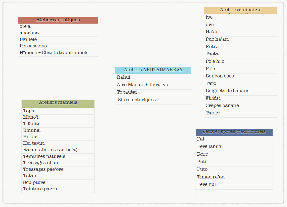 Choix des ateliers pour la Journée Polynésienne du 20 / 05 / 22